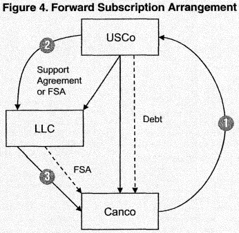 The objective for U.S. federal income tax purposes is for the loan, both forward subscription agreements, and the issuance of common shares of the Canadian acquisition company to be treated as an integrated instrument such that the loan is treated as equity rather than debt for U.S. federal income tax purposes. Structured properly, the shares issued by the Canadian acquisition company in connection with the share subscription by LLC under the forward subscription agreement (using the funds paid by the Canadian acquisition company on account of the interest on the loan) should be treated as a tax-free stock dividend for U.S. federal income tax purposes.